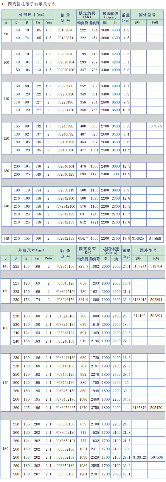 Cuatro hileras de los rodamientos de rodillos cilíndricos